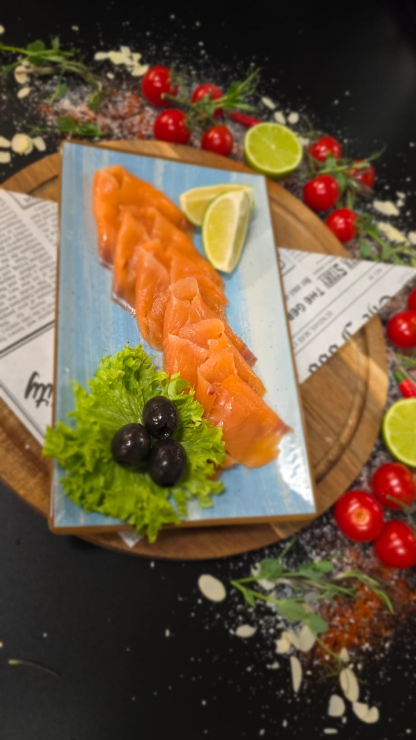 Семга слабосоленая Слабосоленая, нежная, тонко нарезанная семга. Подается с лимоном и имбирем. 750 ₽ - + 120 г Описание Слабосоленая, нежная, тонко нарезанная семга. Подается с лимоном и имбирем. Вас могут заинтересовать: Лимон лимон 40гр 150 ₽ - + Подробнее > Оливки и маслины Оливки и маслины 100гр 450 ₽ - + Подробнее > Буженина с хреном Охлажденная, аккуратно нарезанная буженина с хреном. 100г 450 ₽ - + Подробнее > Грибочки из бочки Маринованные грибы 150гр 490 ₽ - + Подробнее > Сало по-деревенски Состав: Нежное Сало,Горчица,Солёные огурцы,Черри помидоры 90гр 499 ₽ - + Подробнее > Селедочка с картошечкой Селедка с картошкой 230гр 530 ₽ - + Подробнее > Рулетики из баклажанов Рулетки из Баклажана- Фаршированные грецкими орехами, сыром и чесноком и кинза 150гр 530 ₽ - + Подробнее > Капрезе Свежий помидор, Моцарелла, Соуз Песто,Оливки, Каперсы, Базилик зеленый,Вяленные помидоры. 250 590 ₽ - + Подробнее > Ассорти из солений Соленья АСССОРТИ Соленые помидоры,Маринованные огурцы,Корейский лук,Крашенная капуста,Маринованный чеснок. 200гр 590 ₽ - + Подробнее > Язык с хреном Говяжий отварной, нежнейший язык в подаче с хреном. 100г 590 ₽ - + Подробнее > Ассорти мясное Мясное Ассорти язык, шейка свиная, рулет куриный 90гр 630 ₽ - + Подробнее > Бакинский букет ассорти из свежих бакинских овощей 300гр 690 ₽ - + Подробнее > Ассорти из сыров брынза, сулугуни,Чечил, Дорблю, пармезан, Креметте 150гр 699 ₽ - + Подробнее > Ассорти рыбное семга с/с, угорь копченый, масляная 120гр 750 ₽ - + Подробнее >